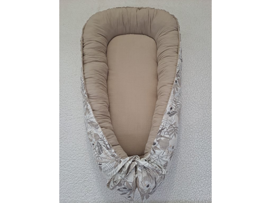 - Hnízdečko je ušité z bavlny v jemných béžových tónech s motivem koalých medvídků a z béžového jemného mušelínu - 100% bavlna