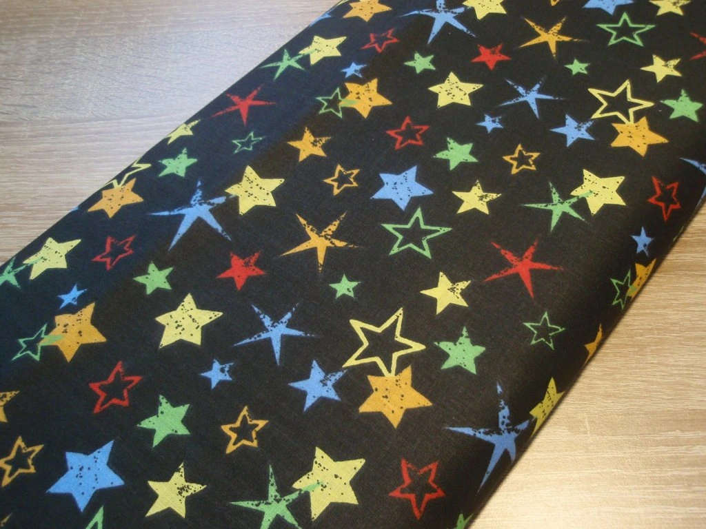 ČERNÁ bavlněná látka s barevnými hvězdičkami