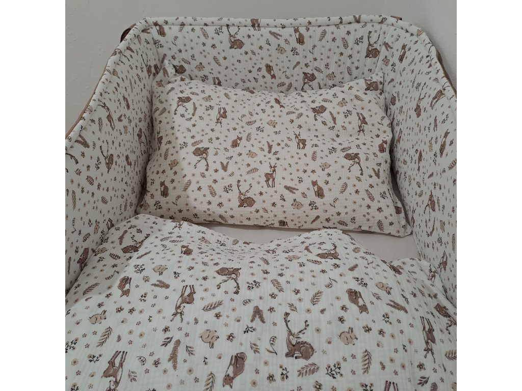 - Ušito ze 100% bavlny - z jedné strany hnědá bavlna a z druhé strany mušelín se zvířátky