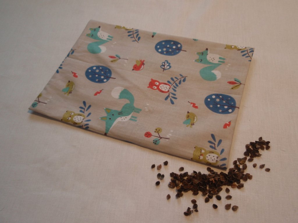 Nahřívací polštářek Lišky tyrkysové s pohankovými slupkami