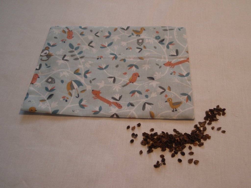 Vnitřek polštářku - potah je z bílé 100% bavlny.Náplň pohankové slupky cca 100 g. Nesmí se prát!!