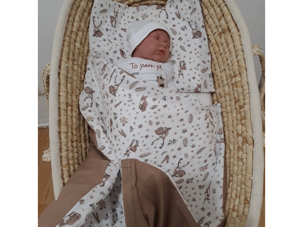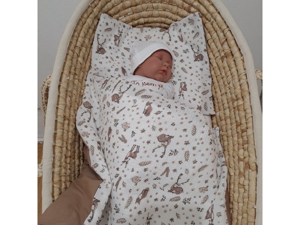 - Povlaky ze 100% hnědé bavlny a bavlněného mušelínu se zvířátky - zapínání na zip