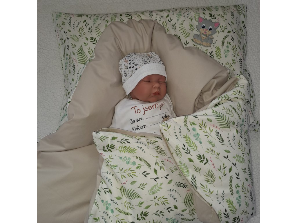 K čemu slouží hnízdící podkladový polštářek - Pokud rozbalíte miminko a necháte ho ležet pouze na zavinovačce, všimnete si, že hlavičku vždy stáčí k jedné straně. Má tendenci se prohnout a zaklonit hlavičku tak, jakoby se chtělo dívat co se děje za ním. Je to ale tím, že miminko neumí na rovném podkladu ležet rovně. Pokud ale pod zavinovačku vsunete podkladový polštářek, hned uvidíte, jak se miminko krásně srovná a dívá se před sebe. Podkladový polštářek pod péřovou zavinovačkou pomůže miminku ležet stabilně a rovně a celé tělíčko se tak vyvíjí symetricky.