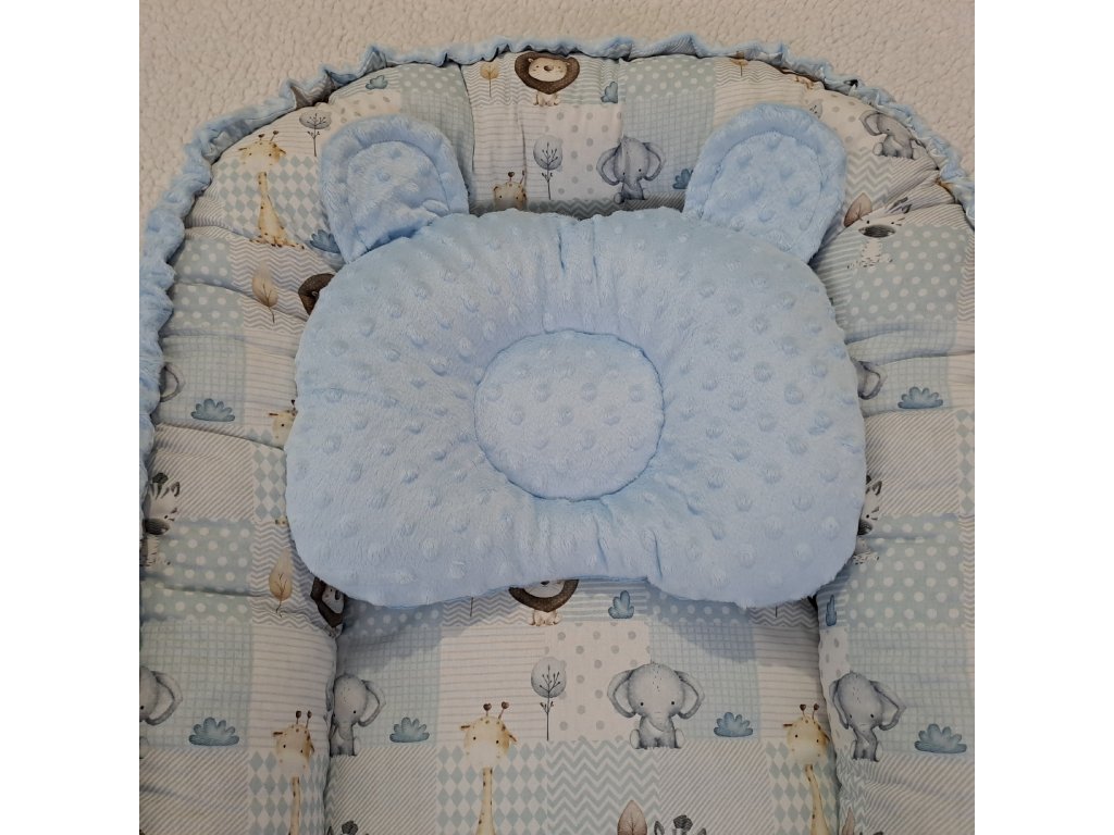 Pomáhá udržet hlavičku miminka ve správné poloze a zabraňuje zploštění. Je vhodný do hnízdeček, postýlek, autosedaček , kočárků.