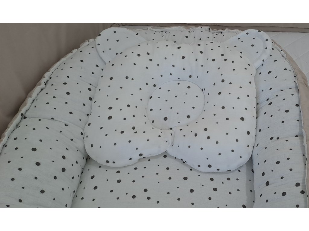 Pomáhá udržet hlavičku miminka ve správné poloze a zabraňuje zploštění .Svalstvo a měkké části hlavičky se tak správně vyvíjí.Je vhodný do hnízdeček, postýlek, autosedaček i kočárků.