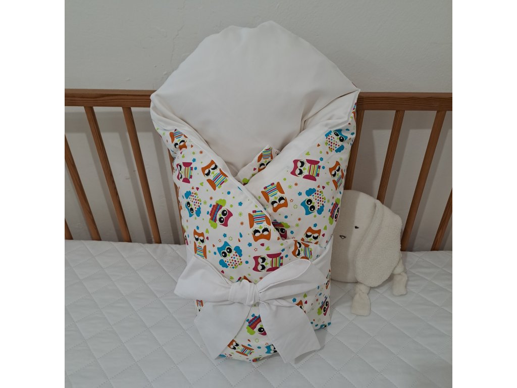 12. Podkladový polštářek pod péřovou zavinovačku má rozměr 40 x 60 cm a slouží k dokonalému ,,hnízdění" miminka. Později polštářek můžete využít jako klasický polštářek do postýlky.