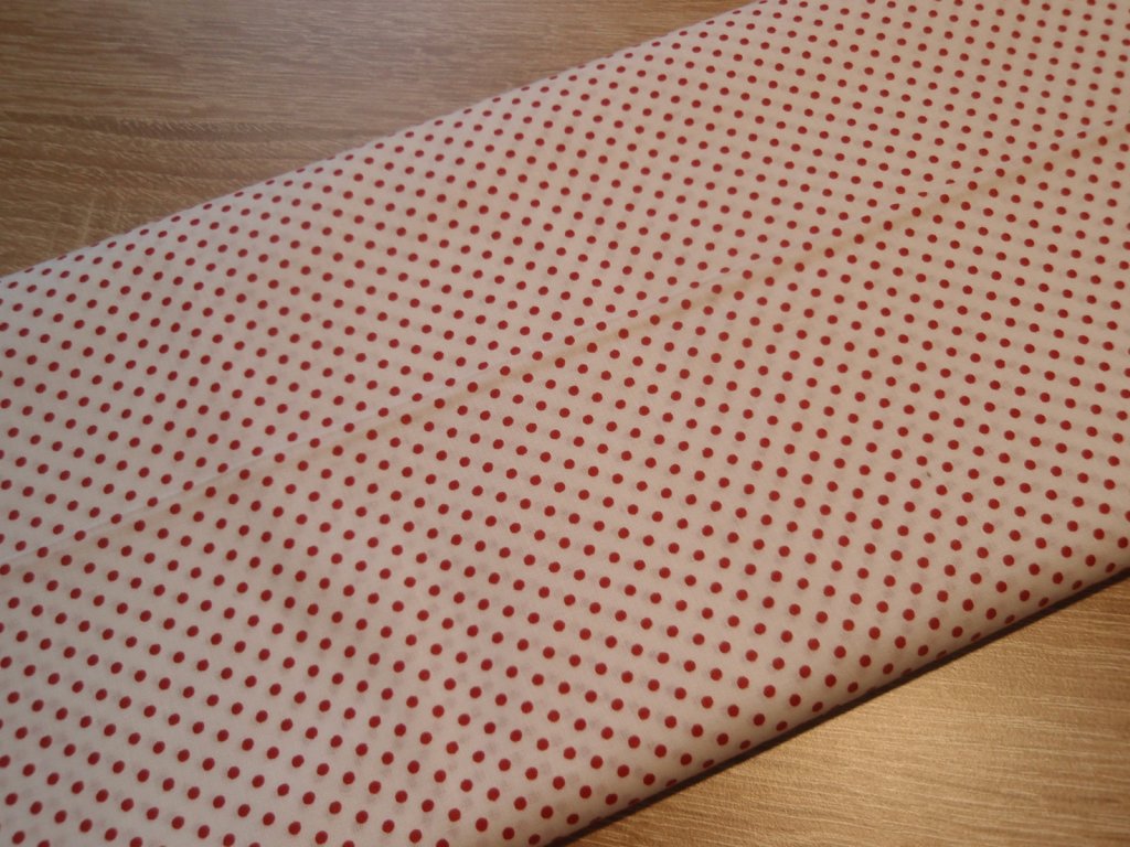 Bílá bavlněná látka s červenými puntíky - velikost puntíků cca 2 mm.