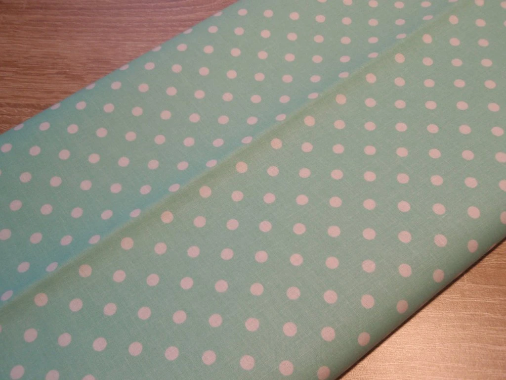 MINTOVÁ bavlněná látka s bílými puntíky - velikost puntíků cca 6 mm