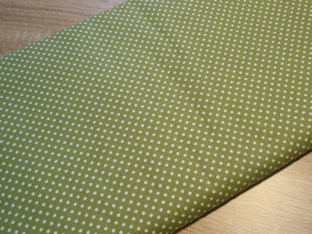 KHAKI ZELENÁ bavlna s bílými puntíky - velikost puntíků cca 2 mm.