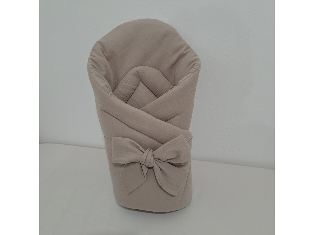 Mušelínová rychlozavinovačka s mašlí pro bezpečné zavinutí miminka.