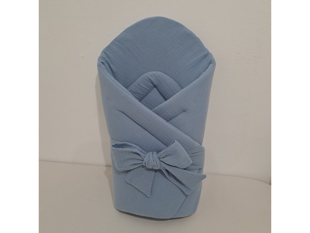Mušelínová rychlozavinovačka s mašlí pro bezpečné zavinutí miminka.