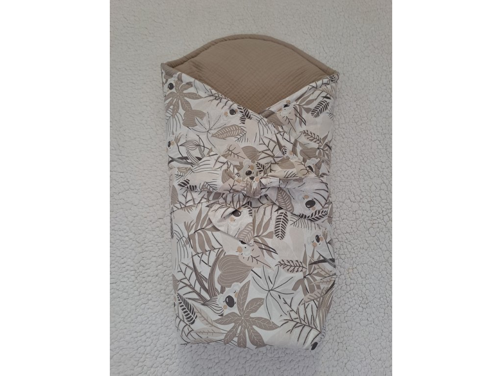 - Ušito ze 100% bavlny s motivem koalých medvídků a jednobarevný béžový vnitřek je z jemného mušelínu. .